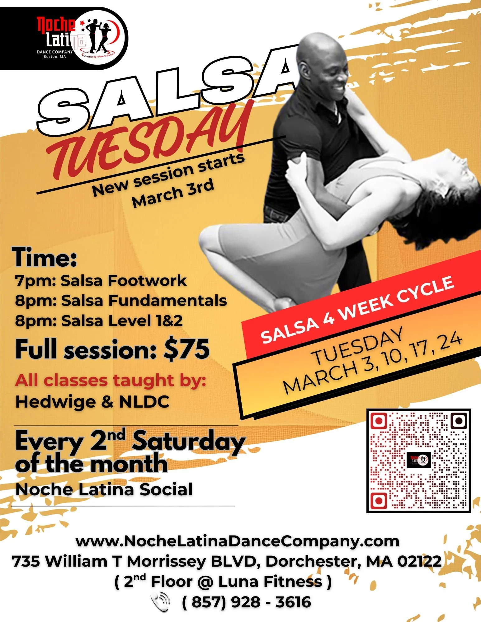 Noche Latina Dance Company (NLDC) has been sharing our love and passion for dance with the Boston area communities since 2005 when it was founded by Hedwige Jean Louis. NLDC strives to create a fun environment where dancers of diverse backgrounds can celebrate the joy of dance together, creating cultural harmony on the dance floor. Read More...